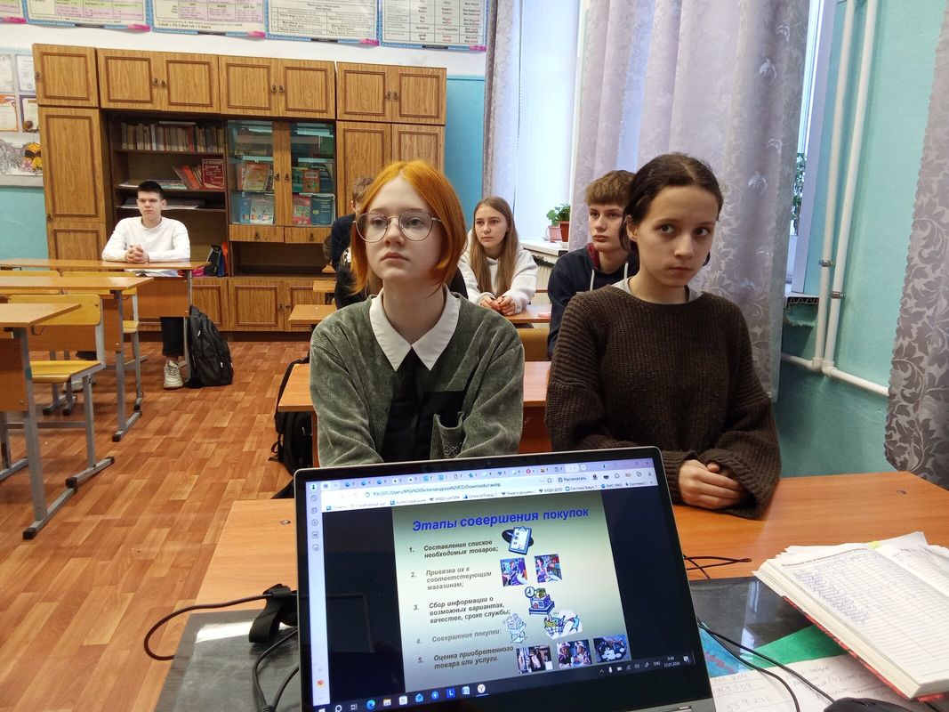 8 класс: «Покупки и планирование покупок». Фокус сместился на потребительское поведение. Ребята анализировали, что такое импульсивные и запланированные покупки, как отличить нужное от желаемого, и разрабатывали алгоритм разумных трат, используя списки и приоритеты.