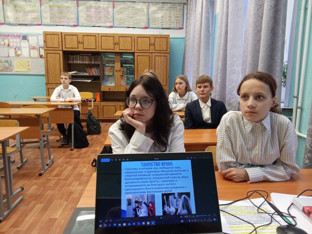 Сегодня, 24 октября 2025 года, прошли занятия для обучающихся 5-9 классов по курсу внеурочной деятельности «Моя семья». Ребята обсудили с педагогами следующие темы: «Праздник всей семьёй», «Православные традиции и семейные праздники», «Семейные таинства». В 9 классе провели интерактивную лекцию «Мужественность».