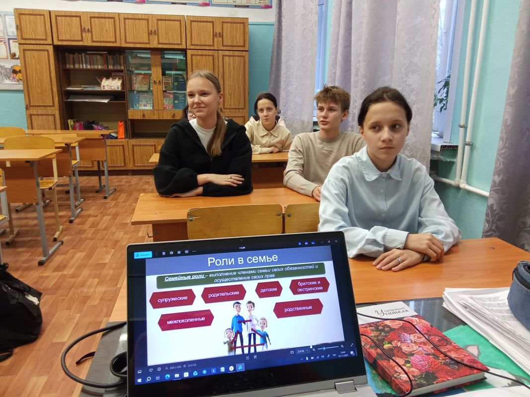Занятие началось с оживленной дискуссии на тему «Роль мужчины в семье». Ученики 5-6 классов делились своими первыми представлениями, часто основанными на примерах из собственных семей: «папа зарабатывает деньги», «чинит машину», «защищает нас». Старшеклассники (7-9 классы) внесли в разговор нюансы, отметив, что роль не ограничивается только традиционными «добытчиком» и «защитником».