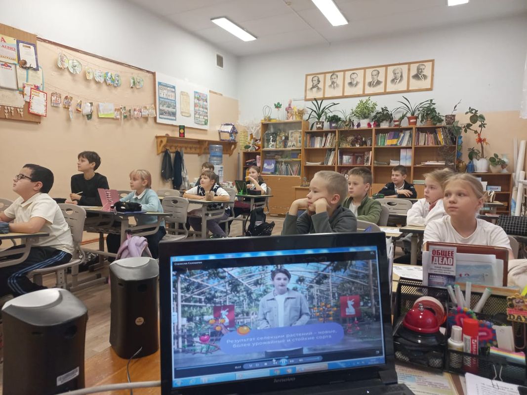 А сразу после торжественного награждения наши ребята отправились на традиционный урок «Разговоры о важном». Мы погрузились в мир науки, которая кормит человечество, – мир селекции и генетики. Поводом стал юбилей великого ученого, настоящего волшебника природы, Ивана Владимировича Мичурина, чье 170-летие мы отмечаем в этом году.