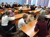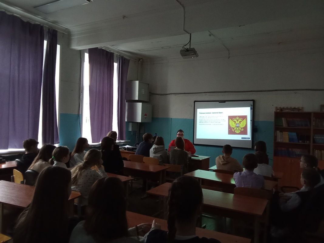 Прежде чем начать соревнование, участникам было важно освежить и углубить знания. Учитель истории провел для всех команд содержательную вводную лекцию. С помощью подробной презентации ребята совершили визуальное путешествие сквозь века: от первых печатей с изображением всадника и двуглавого орла времен Ивана III до современного герба, утвержденного в 1993 году. Школьники узнали о значении каждого элемента: скипетра, державы, трех корон и златоглавого орла, взирающего на Запад и Восток. Этот исторический экскурс задал серьезный и вдумчивый тон всему последующему мероприятию.