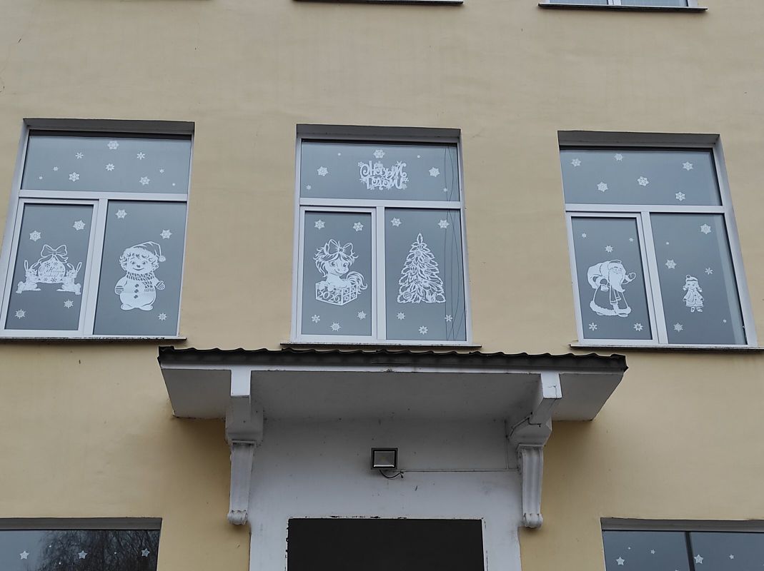 Войдя в школу, сразу попадаешь в зимнюю сказку. Окна каждого класса и коридора превратились в настоящие художественные полотна. Сквозь стёкла смотрят на нас сказочные персонажи, вырезанные из бумаги: забавные снеговики, грациозные олени, пушистые сибирские коты в новогодних шапочках, лошадки с бантиками и, конечно, Дед Мороз со Снегурочкой. Каждое окно — отдельная история, созданная руками учеников и учителей. А кружевные снежинки, которых сотни, нет, тысячи, парят на стёклах, создавая ощущение лёгкого, искрящегося снегопада. Кажется, будто сама сказка сквозь эти узоры заглядывает к нам в гости, напоминая о приближении праздника.