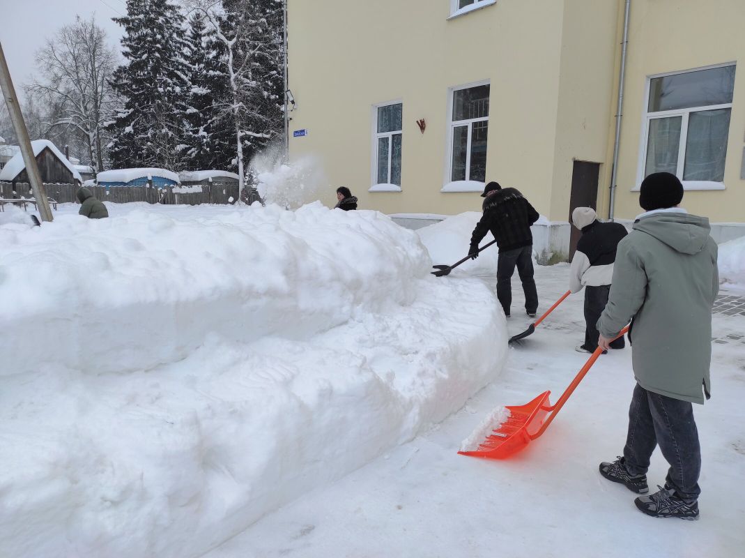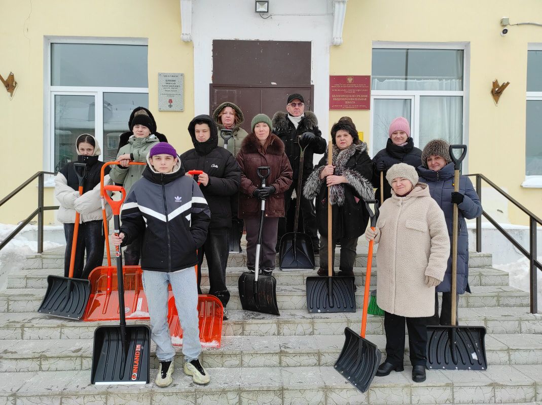 Учителя и ученики объединились для помощи в расчистке снега на пришкольной территории . Акция направлена на благоустройство, формирование трудолюбия и командного духа.